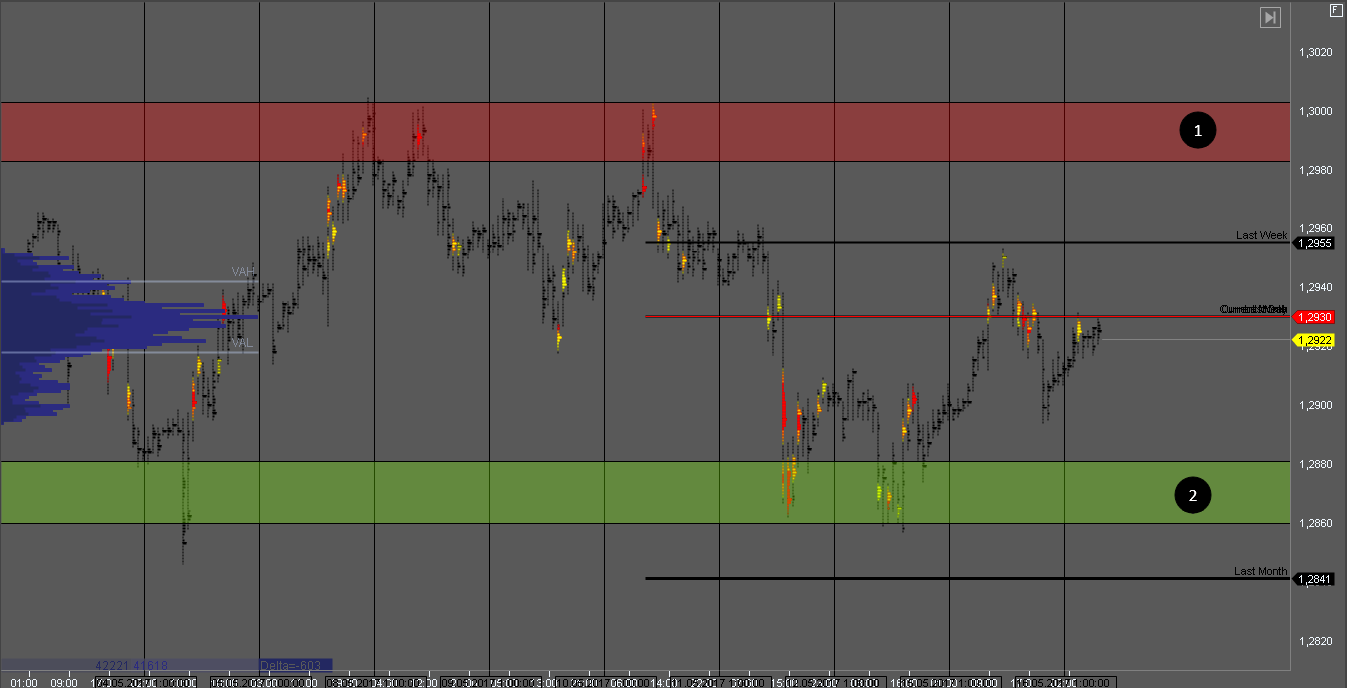 Фунт торгуется в широком диапазоне с границами 1 и 2. Покупатель пытается контролировать котировку с целью в зоне 1. На тесте сопротивления можно искать возможности для продажи. На повторном тесте поддержки 2 можно искать покупки при наличии паттерна. Внутри диапазона трендовые модели рассматривать рискованно.